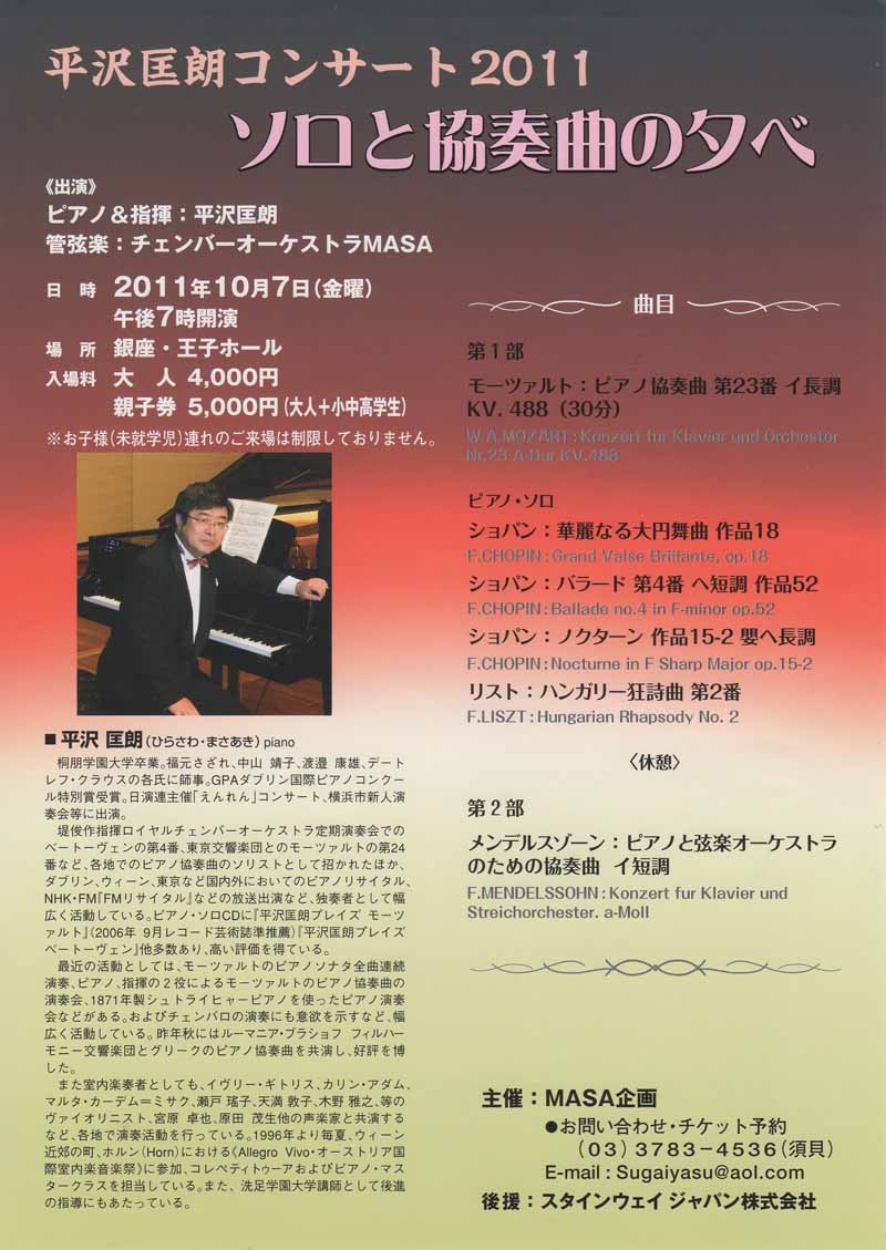 ◆平沢匡朗コンサート2011・ソロと協奏曲の夕べ
